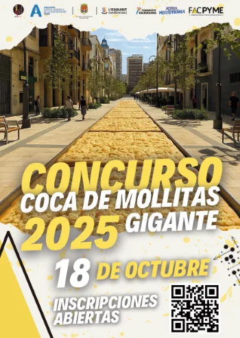 À l’occasion du titre d’Alicante, Capitale Espagnole de la Gastronomie 2025, la ville accueillera une célébration exceptionnelle : la Coca de Mollitas Géante 2025. Une immense coca de mollitas s’étendra sur toute l’avenue de la Constitución, transformée pour l’occasion en véritable fournil à ciel ouvert.