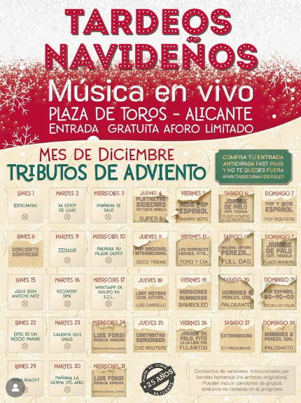 | Sam. 13 déc. | 12h00 | Plaza de la Montañeta | Orfeón Alicante |